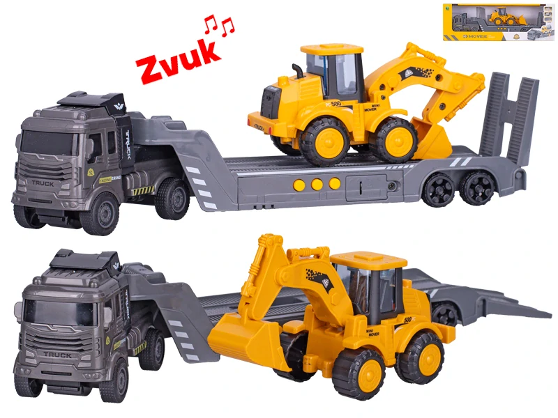 Auto nákladní 30cm na setrvačník na baterie se zvukem + bagr 13cm na setrvačník 2druhy v krabičce
