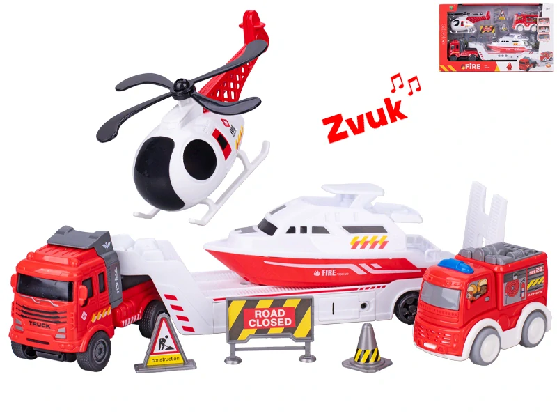 - Auto nákladní 30cm na setrvačník na baterie se zvukem + vozidla hasiči 3ks a doplňky v krabičce
