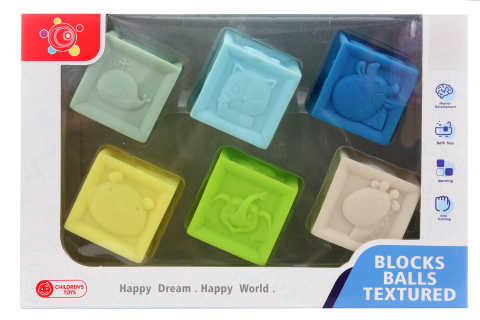 Sada gumových kostek pro nejmenší děti. Rozvíjí jemnou motoriku a zároveň učí. Možno využívat i ve vodě. Rozměry balení cca 28x19x9 cm. Rozměry kostky 5x5 cm. Věk 6m+