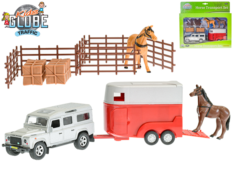 Kids Globe Traffic Land Rover 14,5cm kov na zpětný kov s přívěsem pro koně v krabičceSkladem360 Kč/ ks298 Kč bez DPH