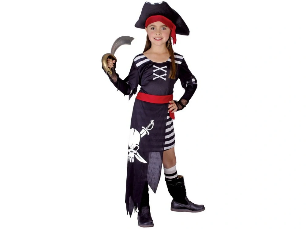 Chystáte se s dítětem na karneval, dětskou párty nebo na významnou kostýmovou událost ve škole či školce? Potom je na místě důkladný výběr vhodného kostýmu. Zkuste se zamyslet, jaký konkrétní převlek vystihne dětskou osobnost, významnou vlastnost, jaký kostým vašemu dítěti bude nejvíce slušet. Bude to kostým komiksového hrdiny, pohádkový kostým, převlek znázorňující nějaké povolání anebo krásné šaty pro princeznu? Při výběru kostýmů a tvorbě případných doplňku zažijete s dítětem spoustu zábavy. Odměnou vám i vašemu dítěti bude radost a spousta zážitků. Staňte se společně hvězdou karnevalu.Karnevalový kostým - Pirátka Velikost: Malá (110 - 120 cm) Kostým je vhodný pro děti ve věku 4-6 let Obsahuje: šaty s opaskem, návleky na ruce, klobouk s čelenkou Neobsahuje: punčochy, náušnice, meč, boty