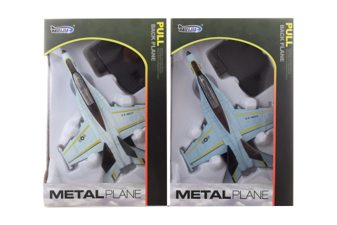 Kovové letadlo na zpětný chod.Napájení na baterie 3xAG13, které jsou součástí balení. Letadlo po stlačení kol vydává zvuky letu a bliká. Baleno v krabici. Rozměry balení cca 17,5x26x6 cm. Velikost letadla cca 22x15 cm. Věk 3+ . Obsahuje rovněž stojánek .