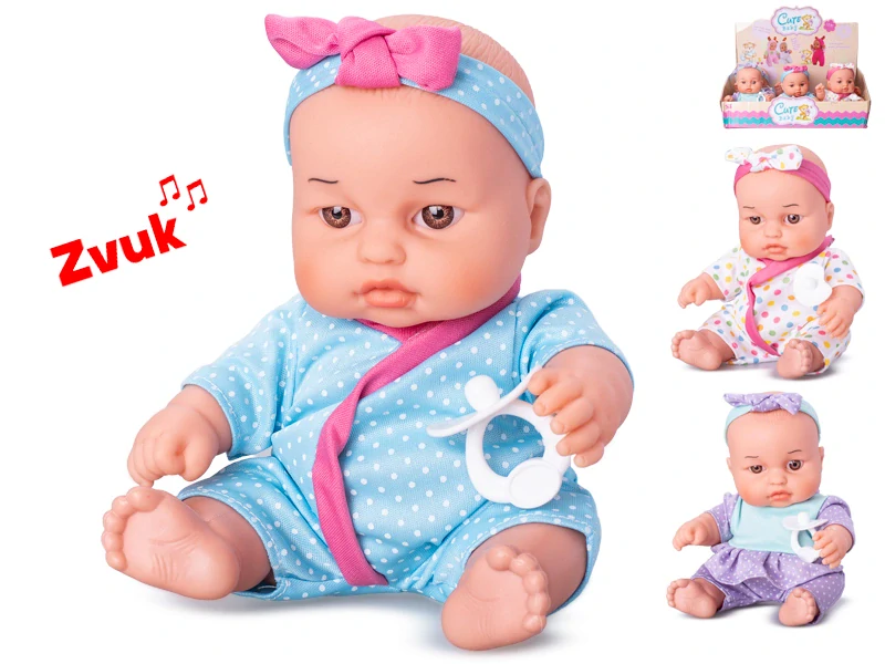 Miminko tvrdé tělo 24cm v oblečku na baterie se zvukem 3barvy 18m+Skladem170 Kč/ ks140 Kč bez DPH