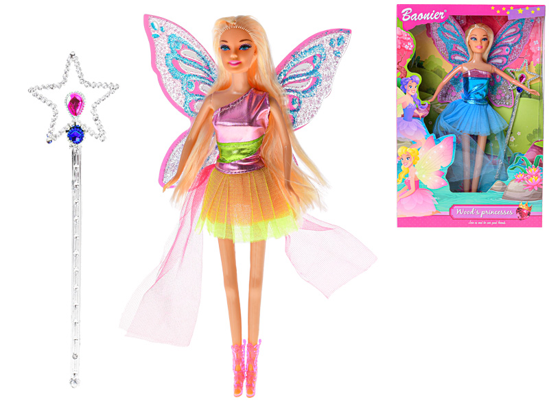 - Panenka víla s křídly 29cm kloubová s magickou hůlkou 2druhy v krabičce