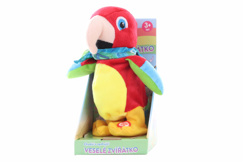 Opakující a chodící papoušek. Veselé zvířátko v krásných pestrých barvách, chodí a opakuje vše, co slyší. Určitě si spolu užijete spoustu zábavy. Napájení 3 x 1,5V AAA baterie (nejsou součástí). Výška zvířátka 22 cm. Zabaleno v otevřeném boxu. Rozměry boxu 20 x 10 x 10 cm. Hračka je vhodná pro děti od 3 let.