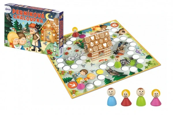 Klasická desková hra pro nejmenší hráče na motivy oblíbené pohádky o Perníkové chaloupce. Hráči se s dřevěnými figurkami pohybují po lese plném dobrodružných úkolů tak, aby se co nejdříve dostaly do cílového políčka. Cestou plní jednoduché úkoly. V krabici: 33,5 x 23 x 3,5 cm Vhodné od 3 let