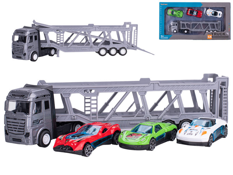 Přepravník aut 22cm kov volný chod s auty 3ks 7cm kov volný chod v krabičce