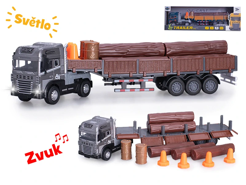 - Přepravník dřeva 38cm 1:24 kov na baterie na setrvačník se světlem a zvukem 2barvy v krabičce