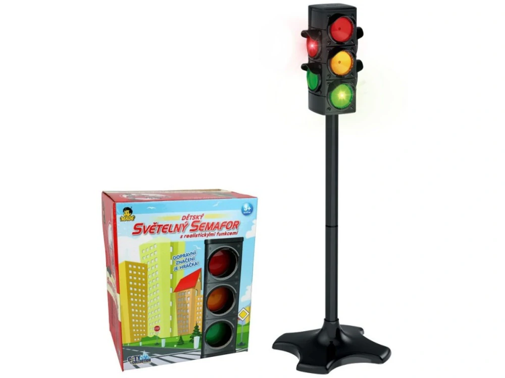 Semafor s funkcemi jako skutečný! Učí děti bezpečnosti silničního provozu s automatickým přepínáním světel.