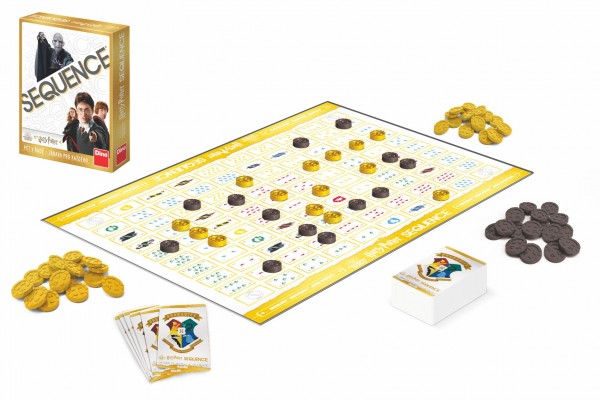 Jak doma vykouzlit pohodu? Přivolejte na pomoc Harryho Pottera. S partou známého čaroděje si zahrajete zábavnou hru Sequence. Cílem karetní partie je vytvořit požadovaný počet sekvencí, neboli řad po 5 žetonech od stejné barvy. Vítězí ten, komu se to podaří jako prvnímu. Sekvence mohou být poskládány horizontálně, vertikálně nebo úhlopříčně. Se skládáním sekvencí vám může pomoci profesor Snape nebo zrzek Ron Weasley, nemilé překvapení vám naopak přichystá karta s Nymfadorou Tonksovou nebo profesorkou Trelawneyovou. Balení obsahuje: 1 herní plán, 104 hracích karet, 135 žetonů (50 antracitových, 50 zlatých, 35 stříbrných), pravidla. Vhodné pro děti od 7 let.