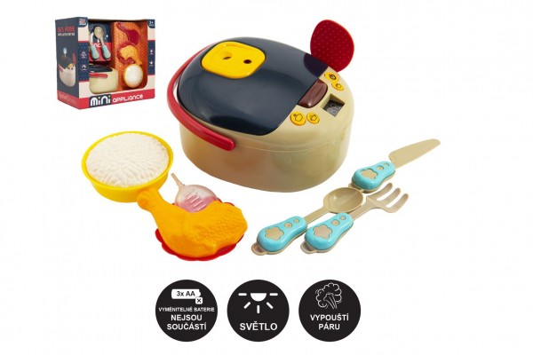 Dětský rýžovar má několik funkcí a fouká páru. Součástí balení jsou kuchyňské potřeby a potraviny. Vyrobeno z kvalitního a odolného plastu. Baterie 3x AA nejsou součástí. Rozměry balení 27 x 25 x 16 cm Vhodné pro děti od 3 let