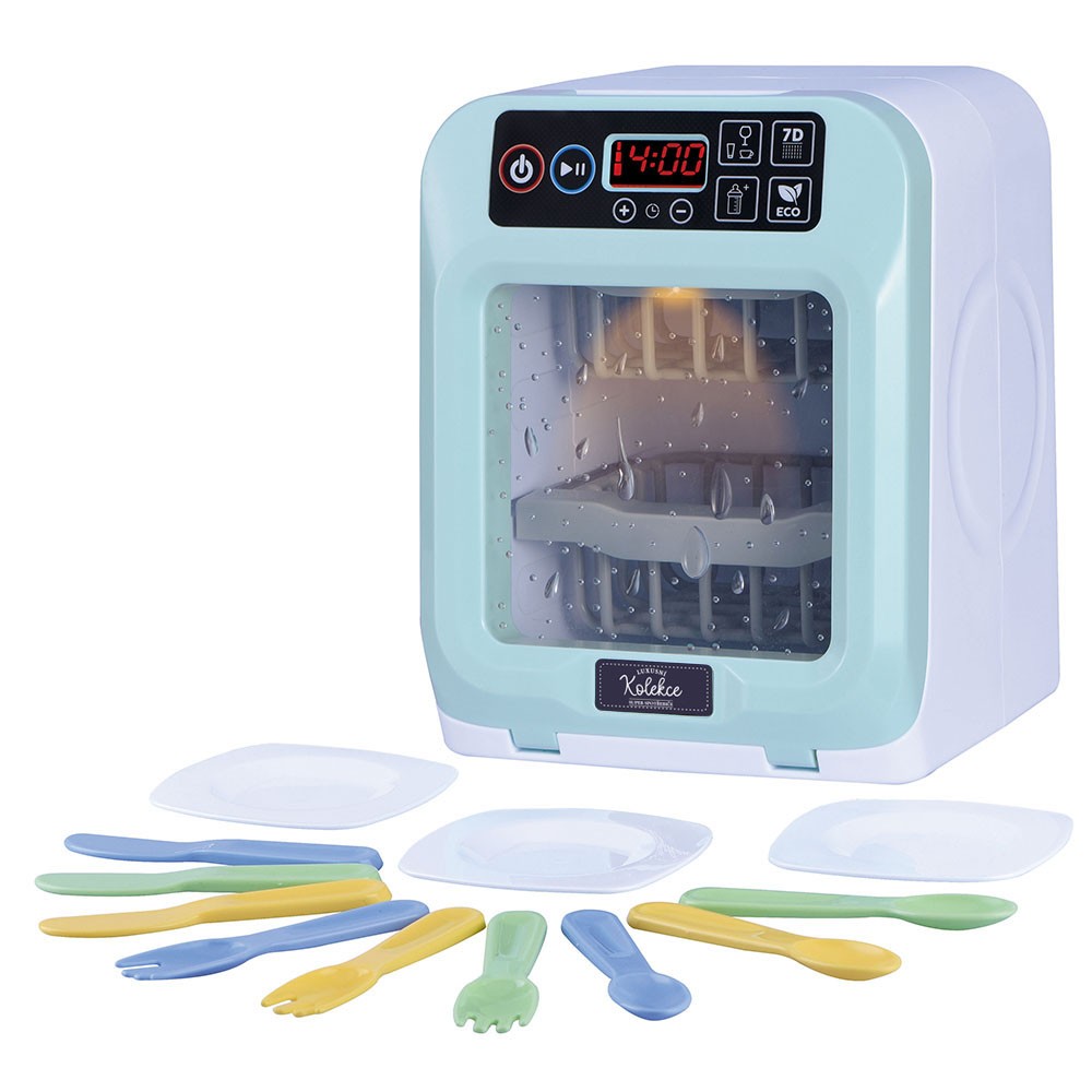Naskládej nádobí do myčky, nastav si správný mycí program a za chvíli máš umyto! Luxusní dětská myčka nádobí s dotykovým panelem, je to, co ti ve tvé dětské kuchyňce chybělo! Tato myčka vydává reálné zvuky jako pravá a svítí. Vyrobeno z kvalitního PVC. Obsahuje nádobí (3x talířek, lžička, nůž, vidlička). Vyžaduje použití 2 ks baterií typu AAA. které jsou součástí balení. Velikost hračky je cca 16 x 21 x 15 cm.